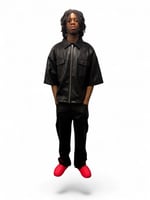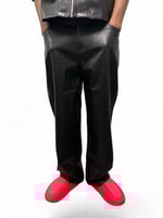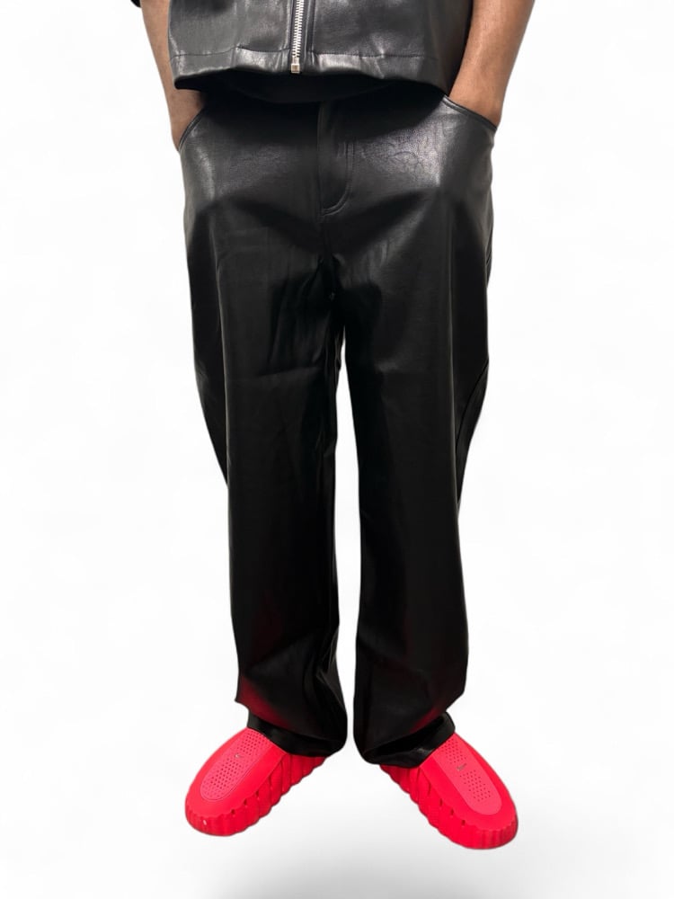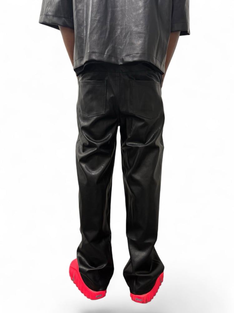 Pantalon en similicuir noir coupé baggy, avec des poches plates à l’arrière et à l’avant.