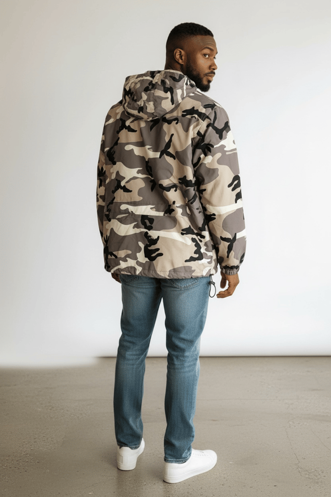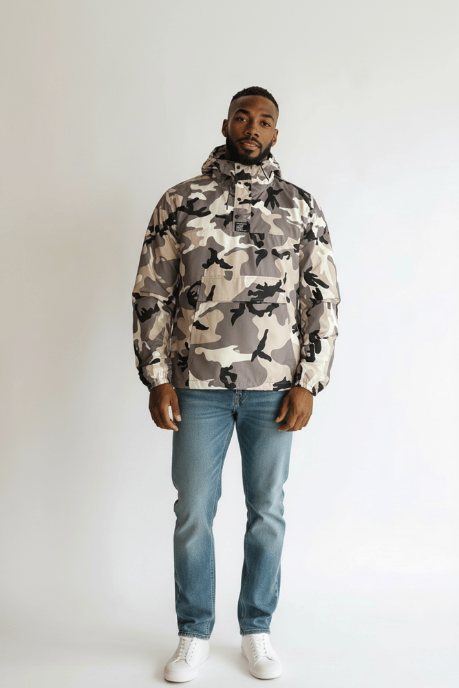 Windbreaker/ Veste coupe vent imprimé motif camouflage multicolore bleu.